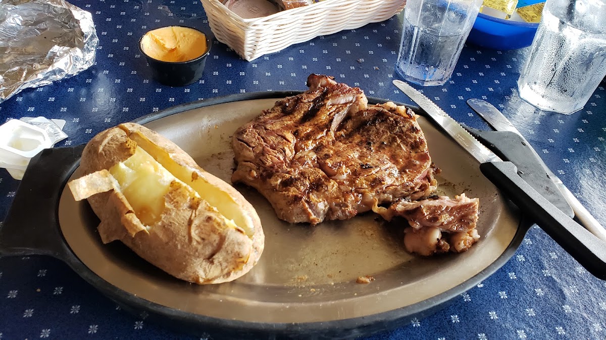 Watched a very enjoyable water ski show, sat outside in shade, had a delicious 10oz tenderloin with salad bar. Beautiful lake views, catch the ski show next summer if you can