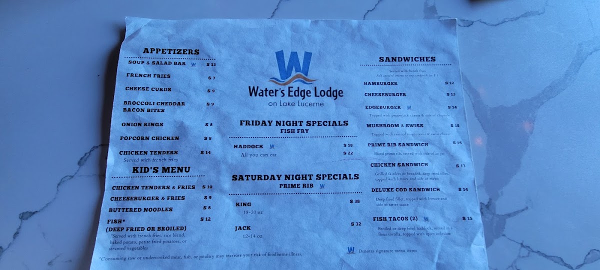 Waters Edge Lodge Menu